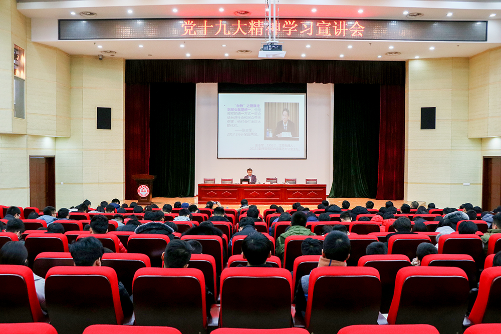 為深入學習貫徹落實黨的十九大精神,1月11日,鐵道供電與電氣工程系和鐵道工程與土木工程系聯合舉行黨的十九大精神學習宣講會,基礎部教師王楠為兩系師生作《臺灣問題與祖國完全統一》宣講報告。鐵道供電與電氣工程系黨總支書記劉紅、副主任趙永君,鐵道工程與土木工程系黨總支書記王新萍、主任郭兆軍等與近200名師生聽取報告。