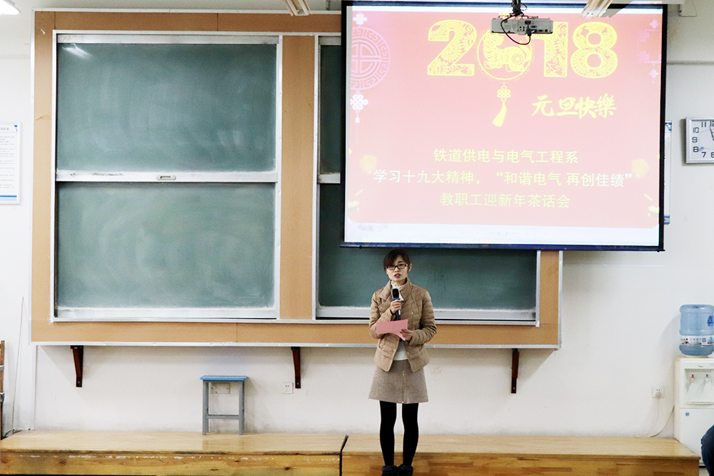 清茶飄香,團結情深;凱歌高奏,辭舊迎新。12月28日,鐵道供電與電氣工程系舉辦“和諧電氣 再創佳績”教職工迎新年茶話會,全體教職工共聚一堂,億往昔、展未來、共祝愿。