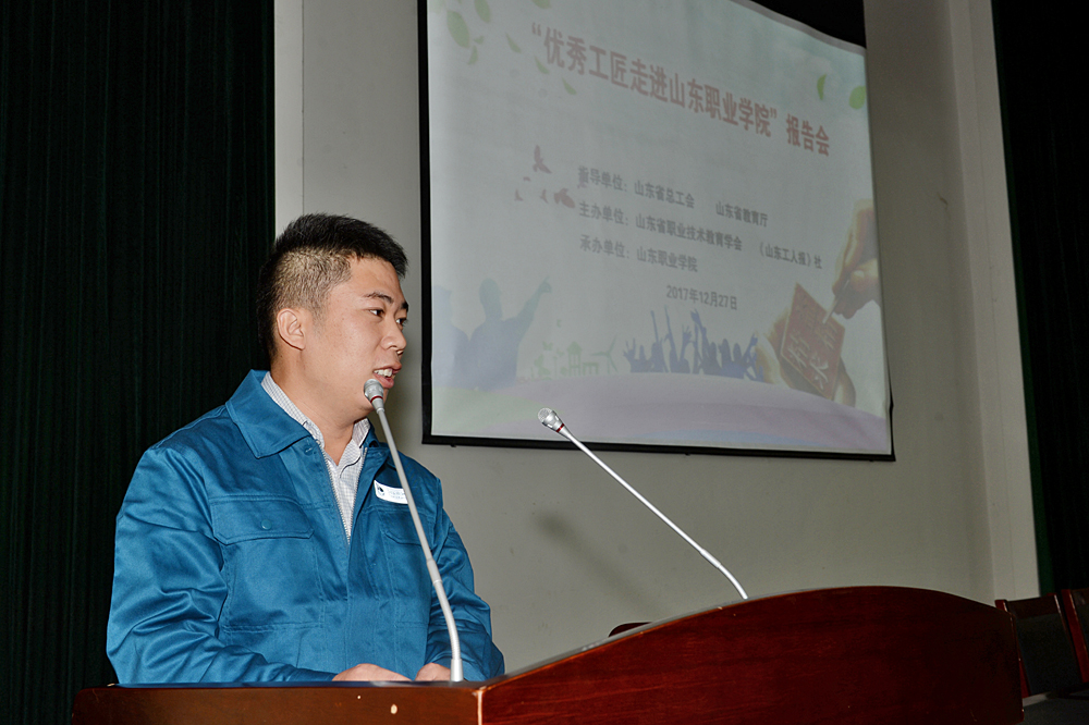 為大力弘揚“工匠精神”,充分發揮職業院校培育和踐行“工匠精神”的教育資源優勢和引領示范作用,推動我省職業院校創新發展,12月27日,由山東省總工會、山東省教育廳指導,山東省職業技術教育學會、山東工人報社主辦的“優秀工匠進校園”活動走進我院。