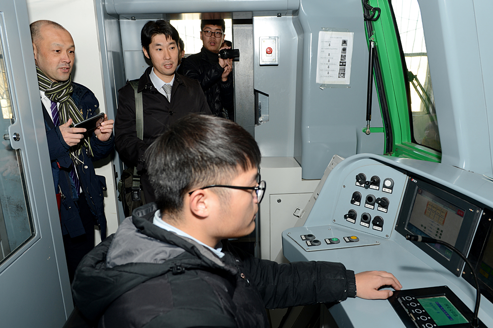 座談結束后,井出訓坤一行在王榮昌、郭鵬的陪同下參觀了鐵道車輛與機械工程系、鐵道機車與機電裝備系、鐵道供電與電氣工程系、鐵道工程與土木工程系和城市軌道交通系實驗實訓場所。